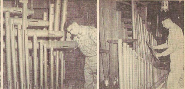 Then we started collecting pipes from old organs and using professional chest magnets for the valves. Here an 8' Principal is added, donated by Bill Reid in 1954.
